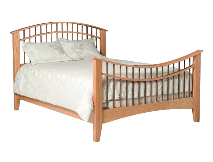 Gentle arched headboard with sturdy, contrasting toned walnut spindles.