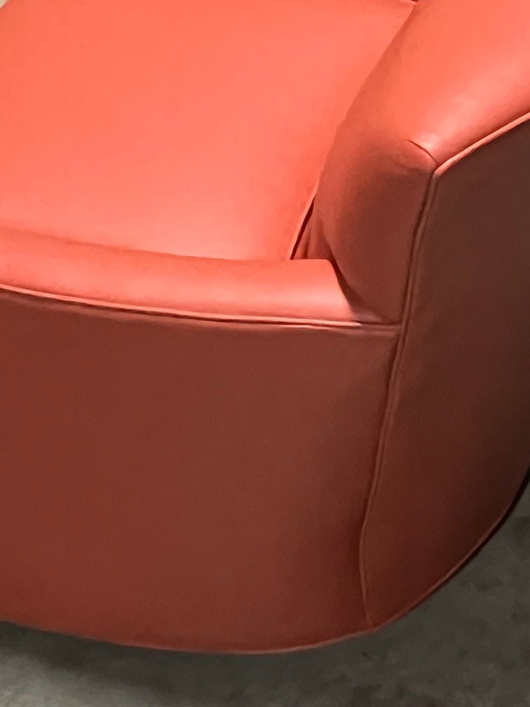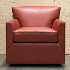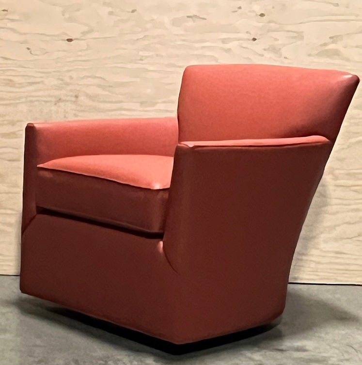 Michaela Non-toxic Swivel Chair - 99305-S Complimenting stationary 99305 Michaela chair, this swivel version is finished lower to the ground to hide the swivel ring mechanism. Our Michaela Swivel Glider Chair swivels and glides back and forth, so we hide the mechanism by adding a kick-pleat skirt.
