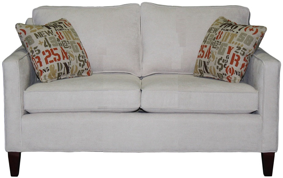 Miles Non-toxic Twin Sleeper - 99430-LSS This classic sleeper design is compact and supportive, offering seating for two and a pull-out bed for one. A full sized Twin mattress (40" wide x 72" long x 6" high). Its seat and back cushions are firmer and more supportive, with a relatively upright posture. Removable legs make delivery/moving from room to room easier. Click here for details regarding Miles and Oscar sleepers. Click here to view available sleeper mattress upgrade options.