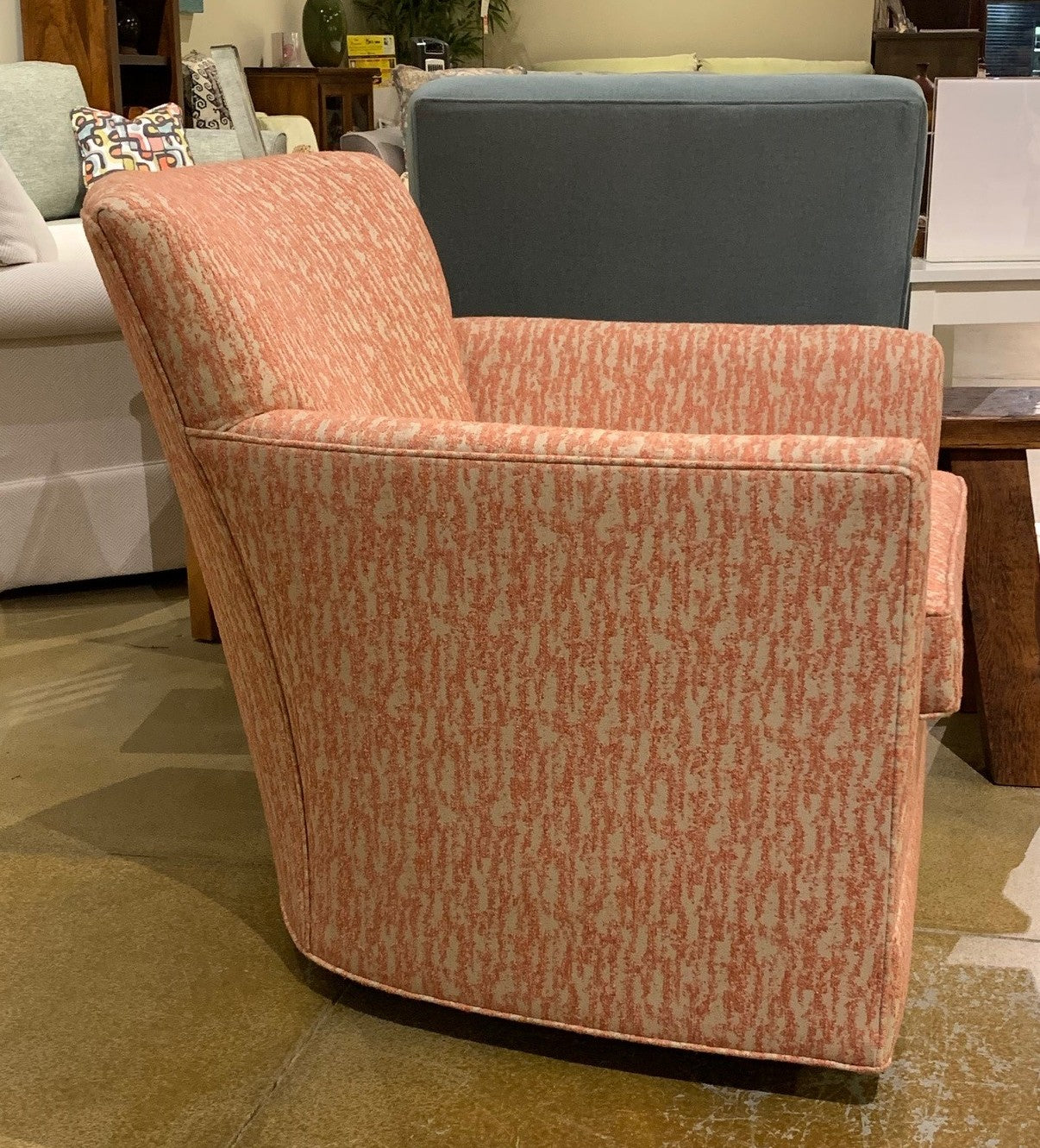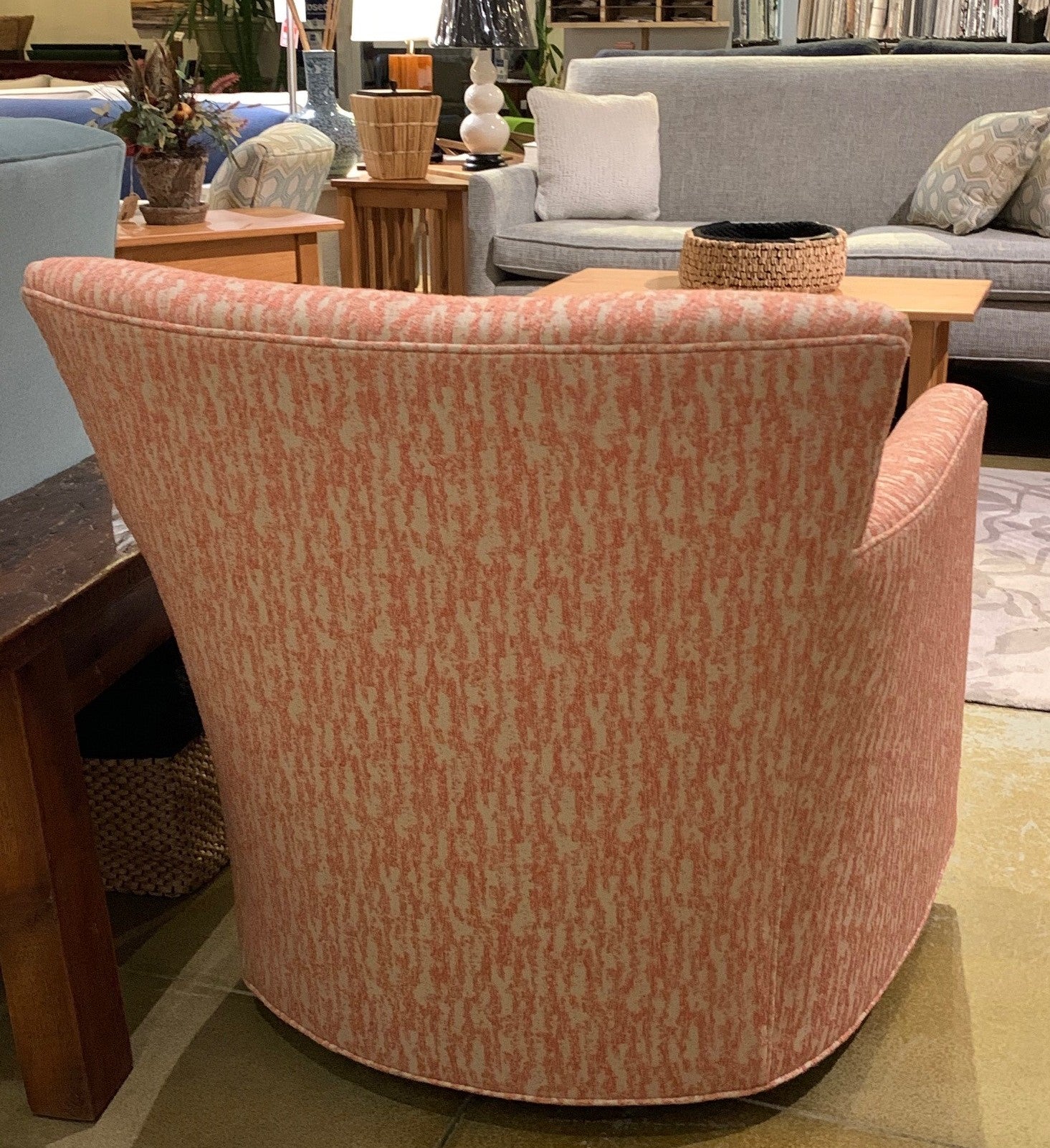 Natalie Swivel Chair - 99315-S The Non-toxic Natalie swivel is shown in recently discontinued grade 4 fabric Cirrus Coral. Arm caps are included with this swivel chair.