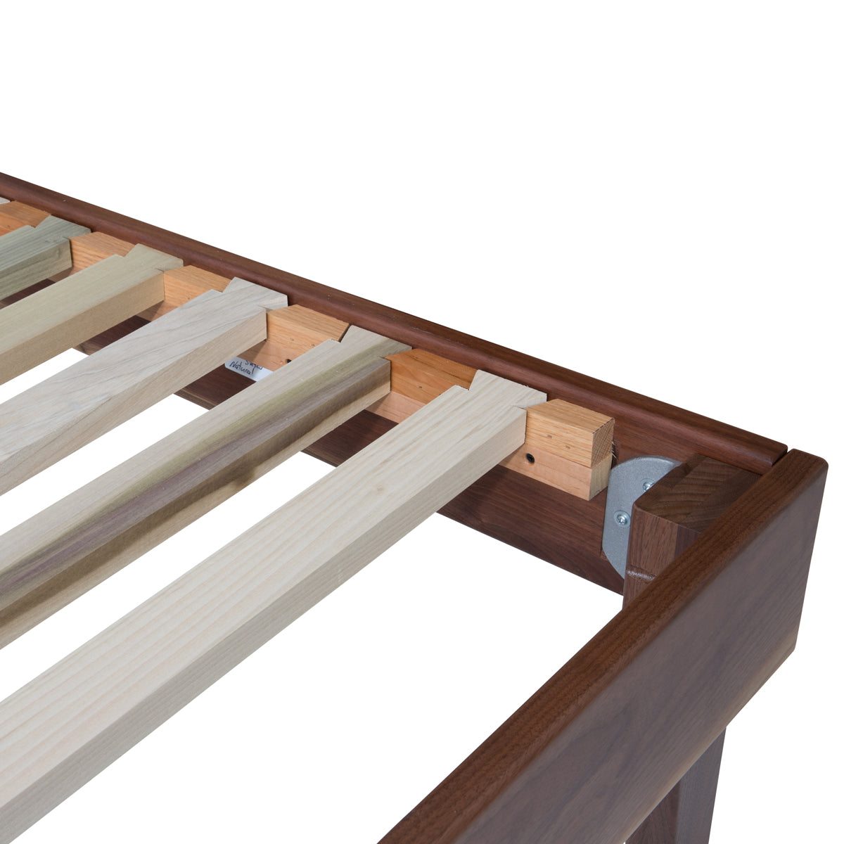 Kenton hardwood platform bed made in USA. Available in twin, XL twin, full, queen and king sizes. Mitered case and slats, low frame for thicker mattresses, tapered round legs with flat sides.