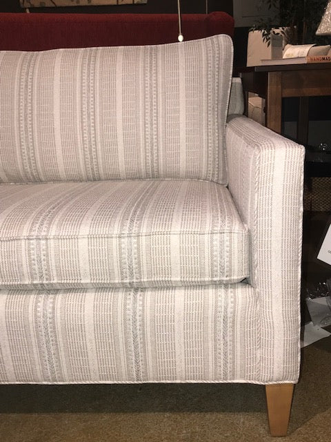 - Miles Chair and Half - 99375-1/2 One of our most compact style with narrow track arms and 33" depth, this Non-toxic Miles Chair and Half is shown with softer cushions (add $95 to grade 3 cost) in 100% recycled fabric Farmhouse Pearl from Revolution Fabrics, with no added chemicals and excellent durability, UV resistance, and easy stain cleanup. Check out the excellent sewing: that's flow matching! Read our floor model sales policy here. Note: This one must stay until its replacement arrives.