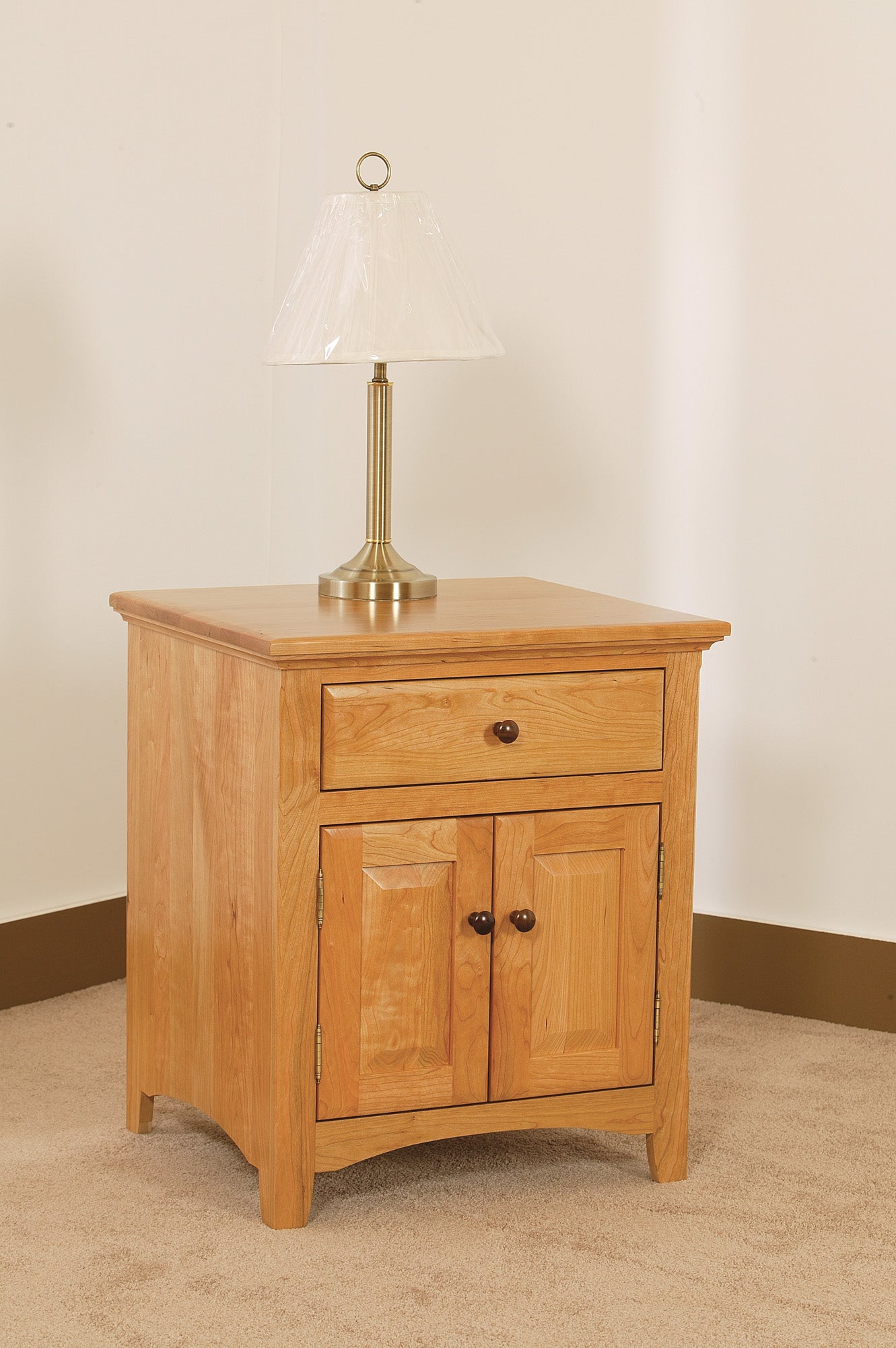 Salem hardwood 1-drawer open nightstand; made in USA. 24" wide x 20.5" deep x 28" tall.