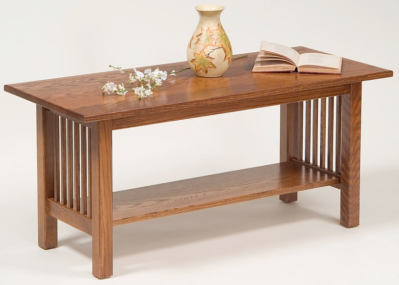 - Hardwood Mission Coffee Table with Shelf - 01-M/O American made from solid maple or oak, ideal in front of one of our smaller sofas. Many finishes available for Maple and Oak.