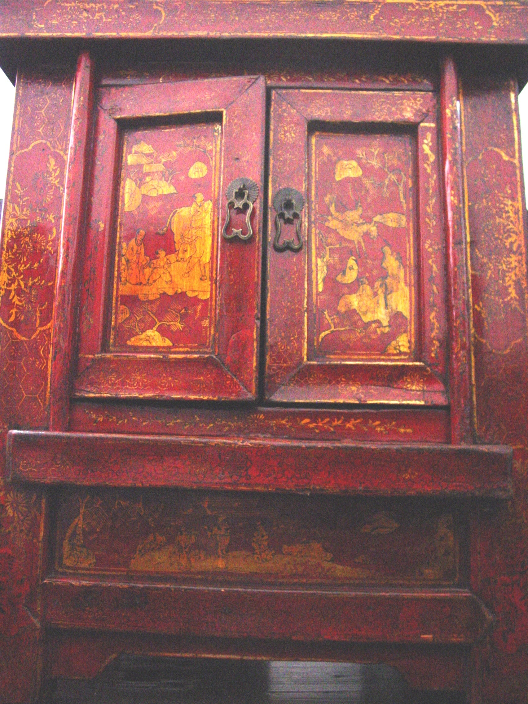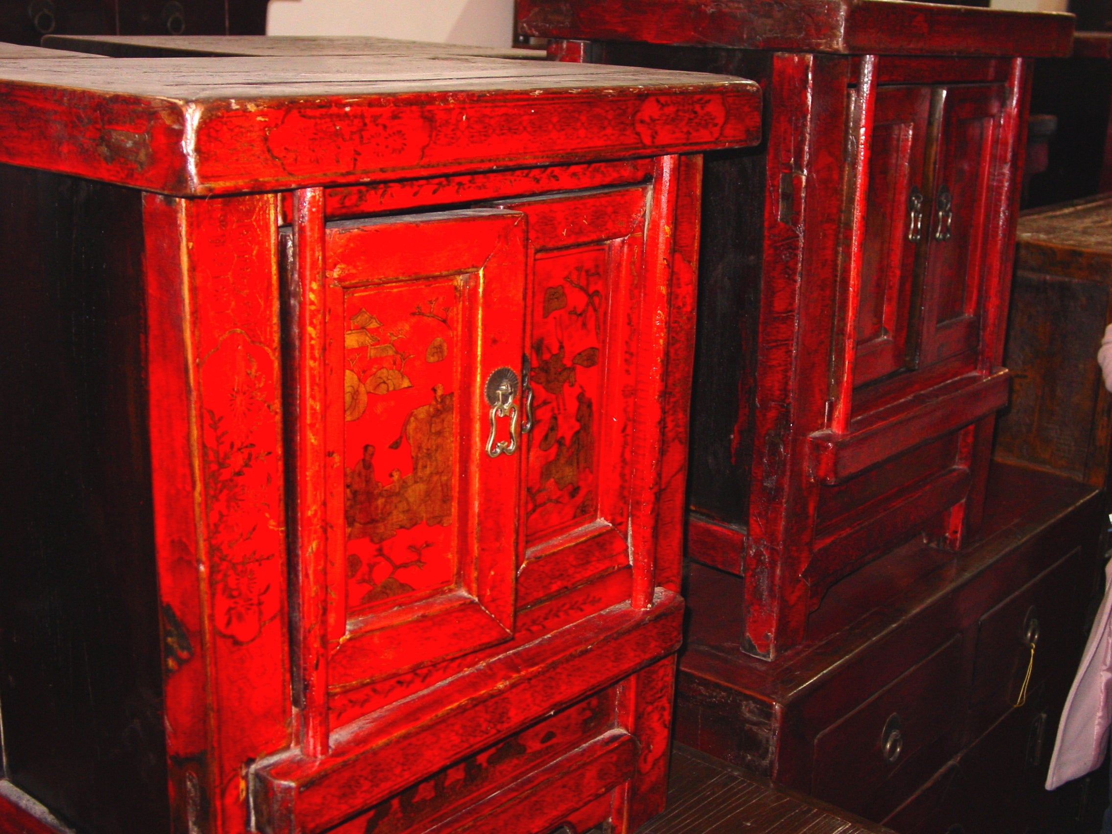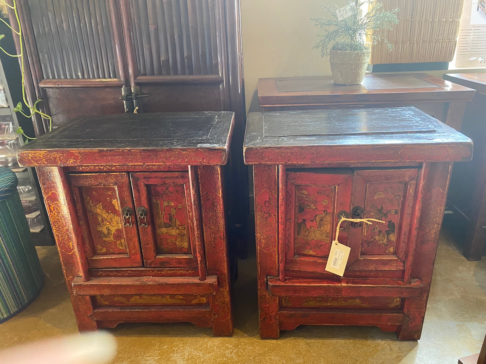 Pair of antique Chinese nightstands with painted doors - Clearance