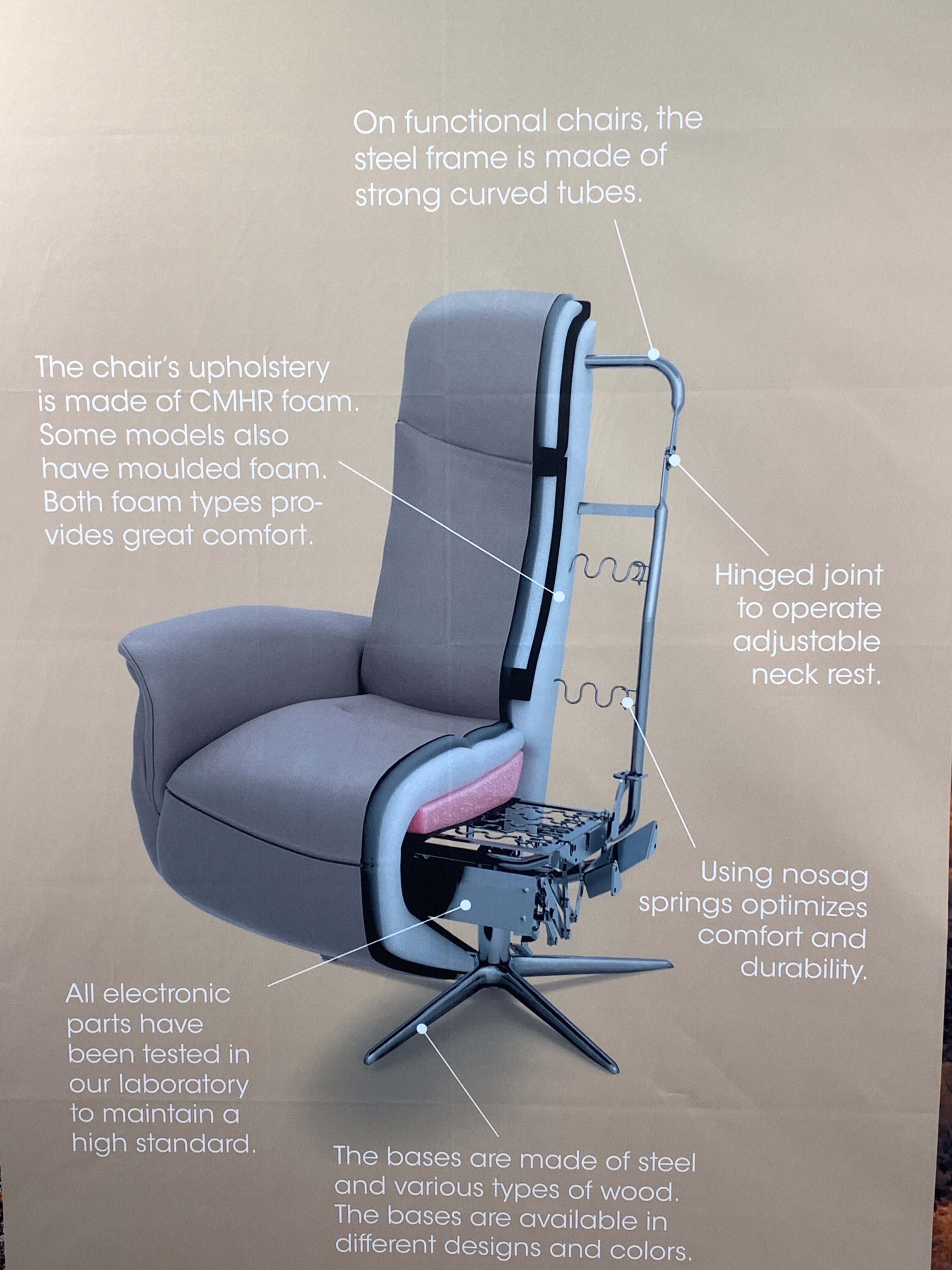 Mechanisms, bases, laminated woods parts*, electric components, motors, controls, gas springs 5 years**.