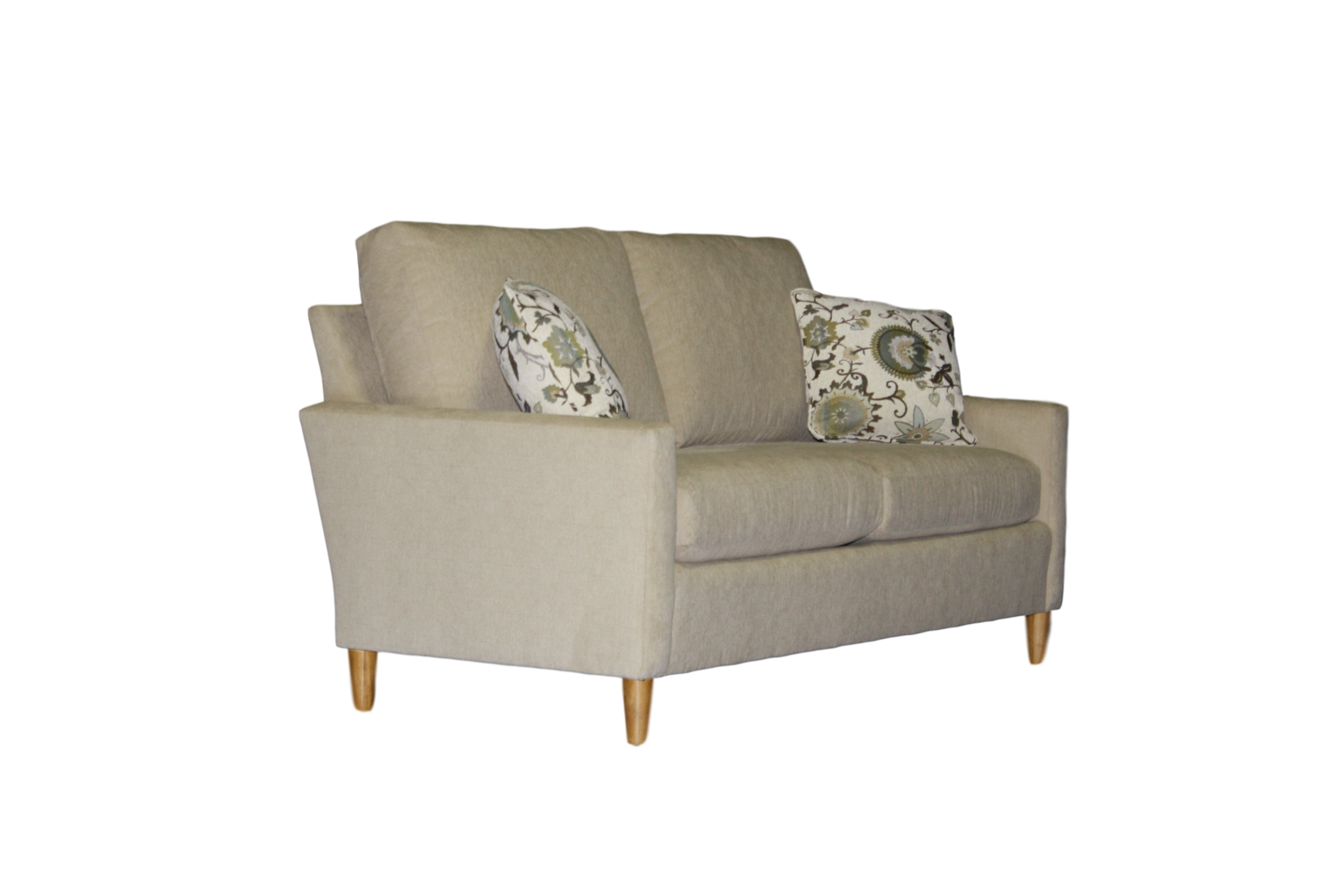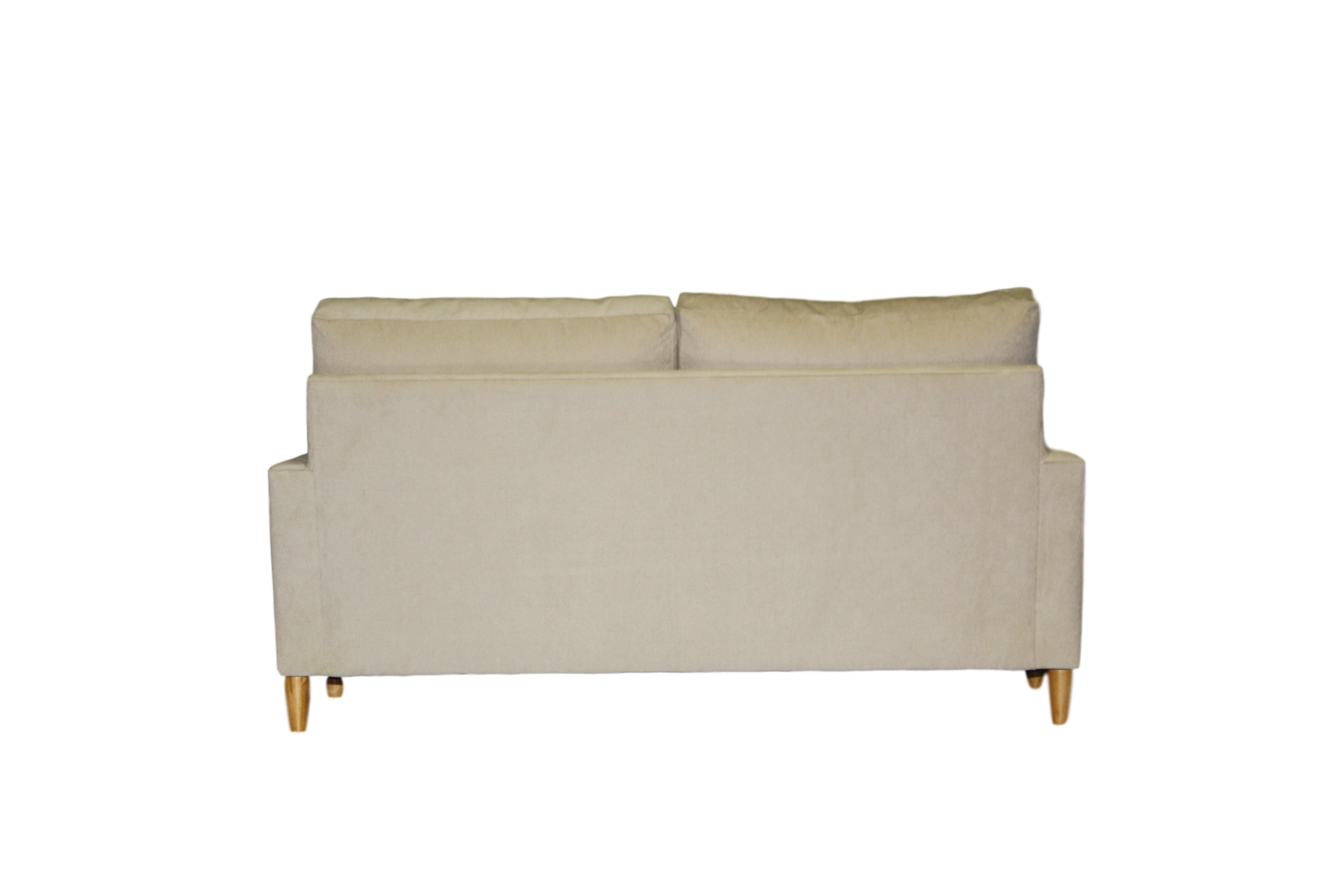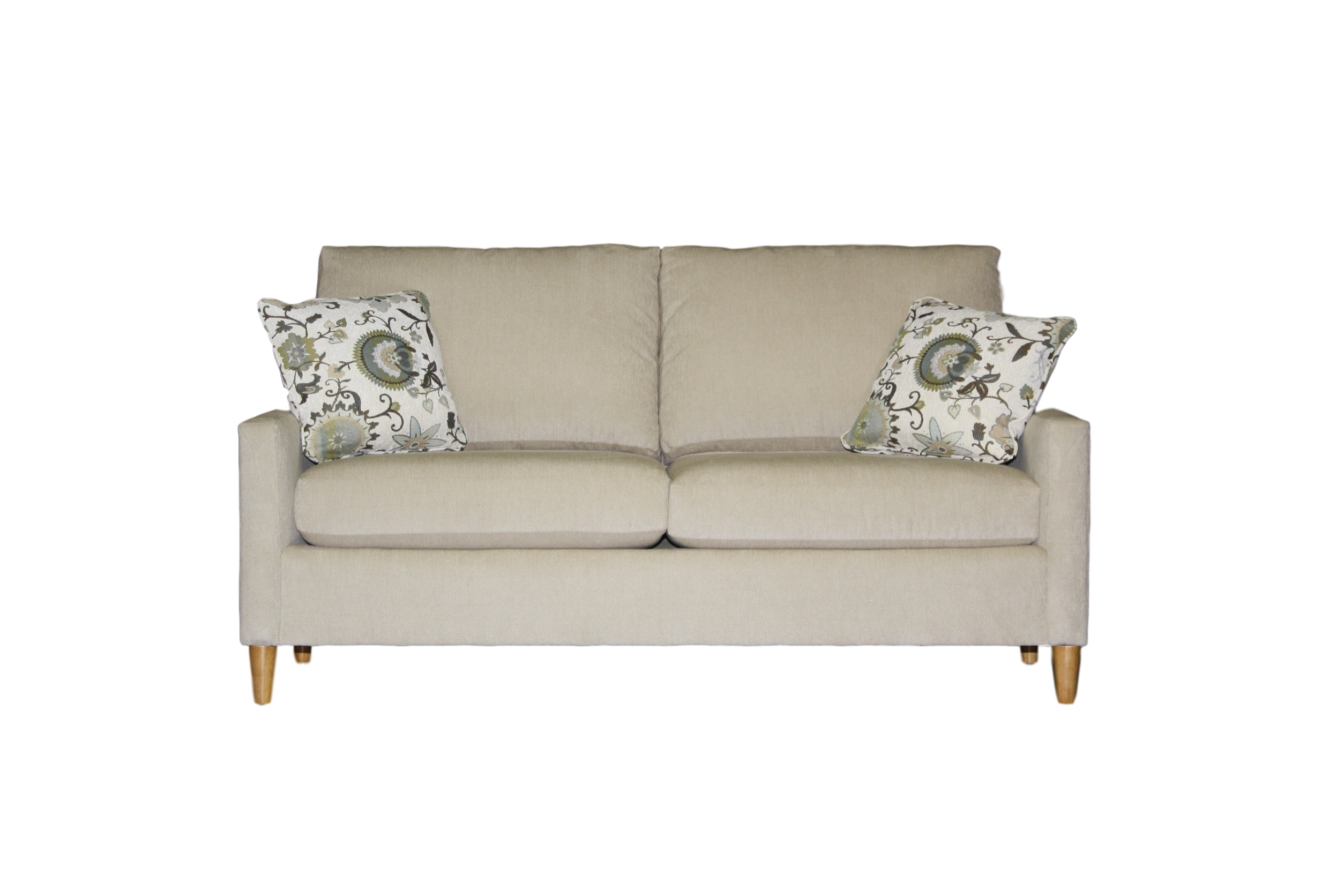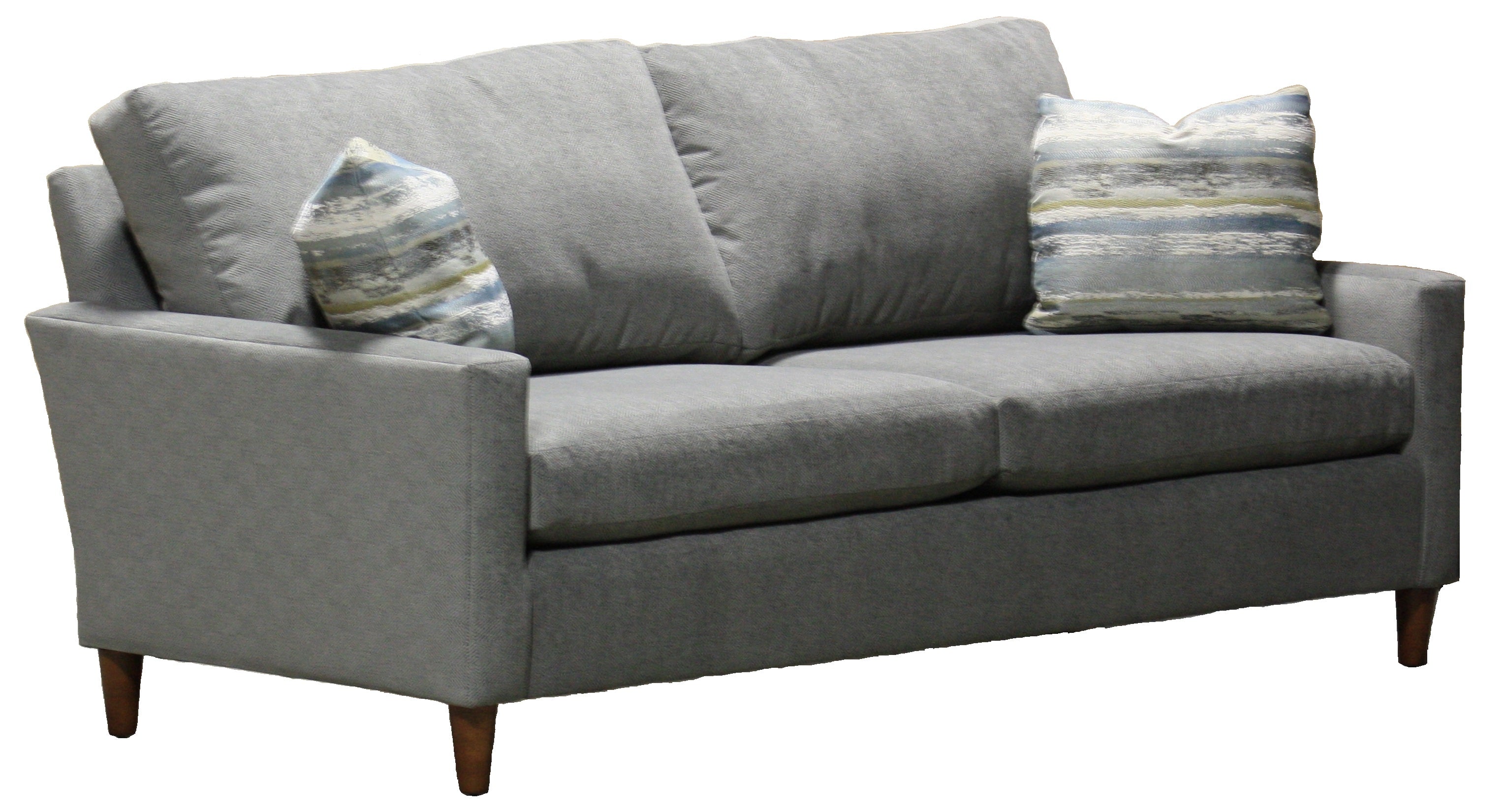 Non-toxic Bowie Condo Sofa - 99980-72 Firm, comfortable sitting, lean back into the taller back cushions. Lots of room between narrow arms. Nice high back. Removable 5" tall conical McCobb style legs make moving easy! Height from the floor to the top of the hard part of the back: 31.5" With legs off, height to the top of the hard back (with cushions removed) is just 26-1/4", easy to fit through almost any doorway.