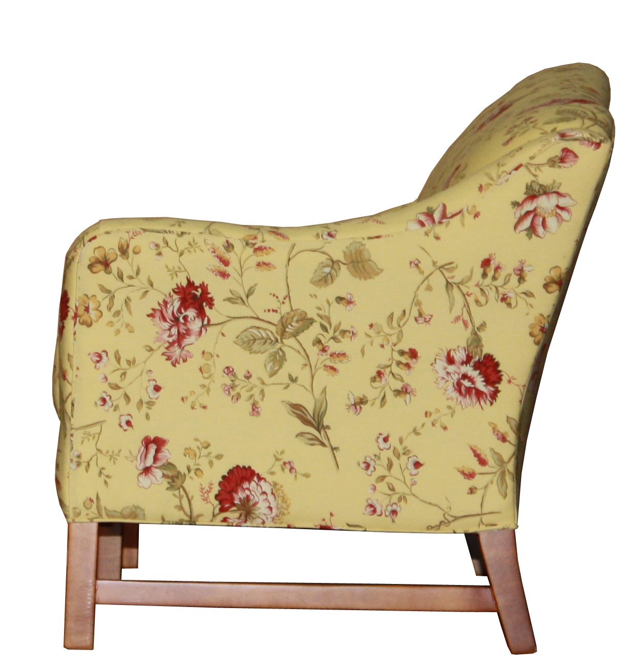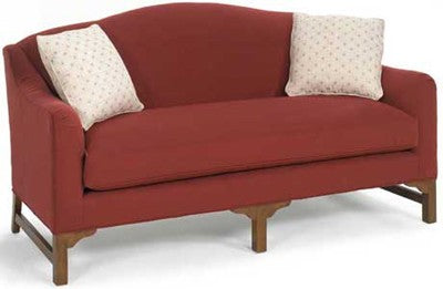 Non-toxic Cottage Sofa - 99640-68 Create a casual or dressy look with this smaller tight-back sofa (no loose back cushions). A staple of New England interiors for over 50 years, we updated the lines a little and adopted this style from Temple Furniture last year. It no longer has the horizontal stretchers between the legs on each side, but we kept the great back support, shallower seat depth, and gentle curves on the camel back. (We'll update photos soon!) A single bench seat cushion is held down on the ends with elastic clips to the sides of the sofa deck. Proudly made in the USA using materials with zero flame retardants.