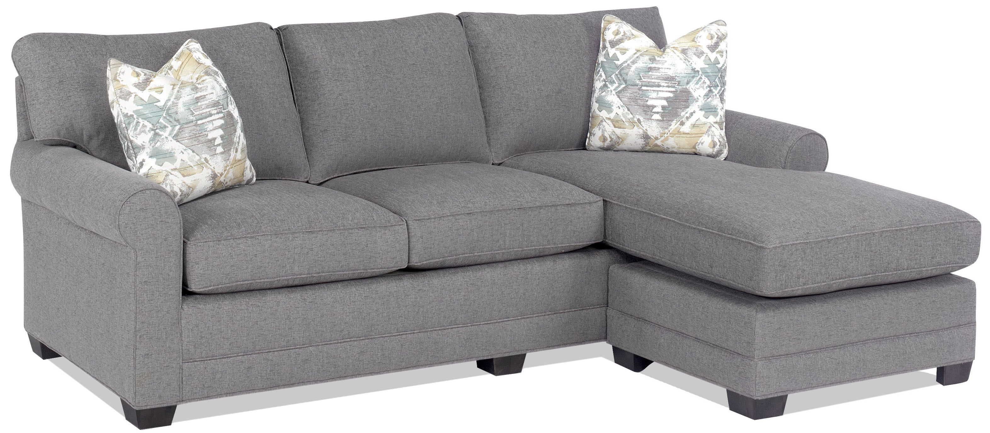 The chaise portion is created by using an ottoman that is movable from one side to the other. The sofa includes a cushion that extends from the seat across the front and onto the ottoman. Because the chaise seat cushion does widen once it extends out over the ottoman, the chaise cushion is intended to be used on either side.