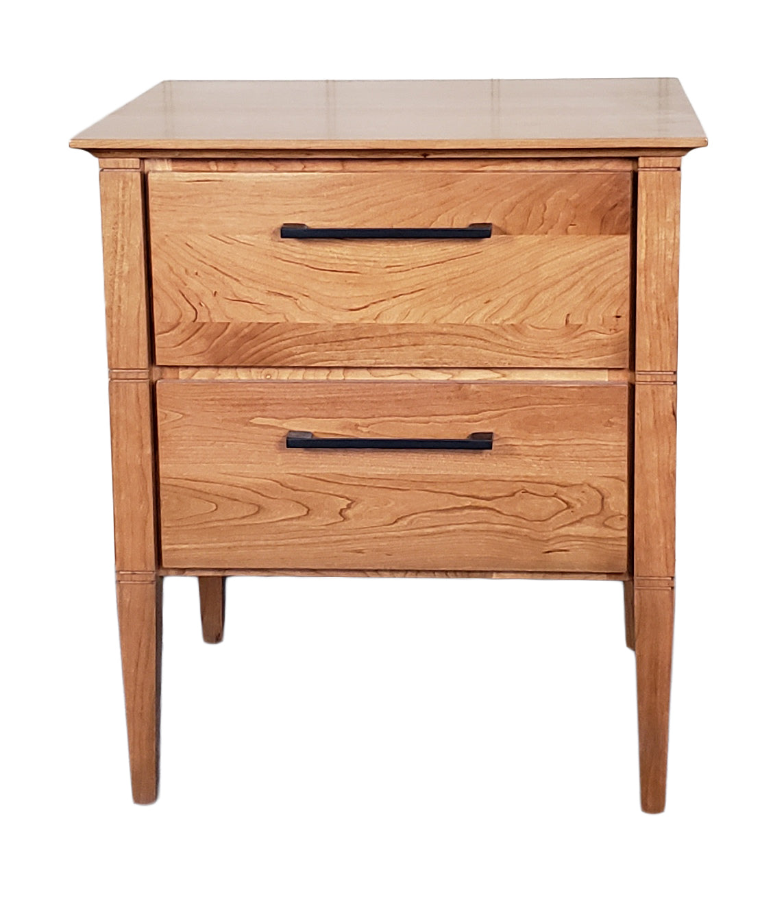 Revere hardwood nightstand with 1, 2 or 3 drawers made in USA. Single drawer open nightstand and 3 drawer nightstand are 30" tall. Two drawer nightstand is 26" tall. All are 22-1/2" wide x 18-3/4" deep.